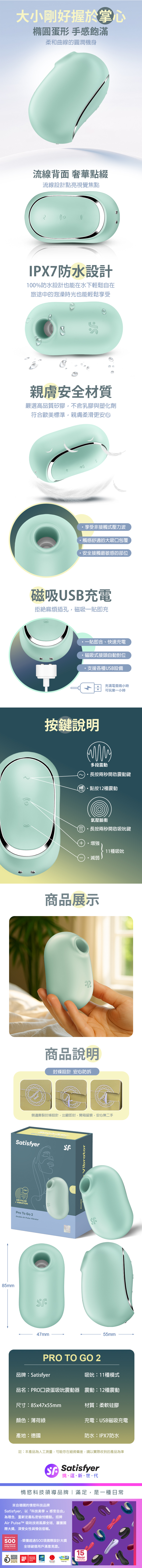 品名:Satisfyer|Pro To Go 2|口袋蛋 吸吮陰蒂震動器 薄荷綠