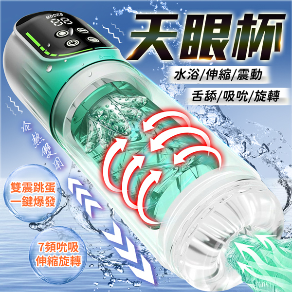 天眼飛機杯|舔伸縮震動旋轉吸吮|多功能電動飛機杯 漸變綠